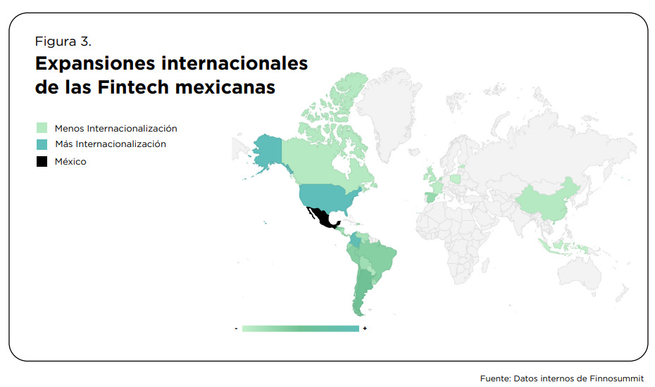 Expansión internacional: Cerca del 50% de las Fintech mexicanas declararon estar operando en otros mercados, principalmente en Estados Unidos y la región de Sudamérica, lo cual incrementa la fuente de ingresos y diversifica el riesgo.