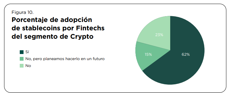 Un hallazgo relevante del Finnovista Fintech Radar México 2025 es que el 62% de las Fintech de Crypto en México utilizan Stablecoins. El principal uso identificado es el envío de remesas y la facilitación de comercio internacional (B2B).