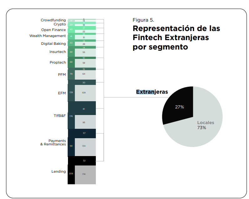 Además de las 803 Fintech locales, el informe reporta 301 Fintech extranjeras operando en México, lo que representa más del 27% del ecosistema total. Esta diversidad impulsa una competencia sólida y una colaboración internacional que enriquece el mercado.